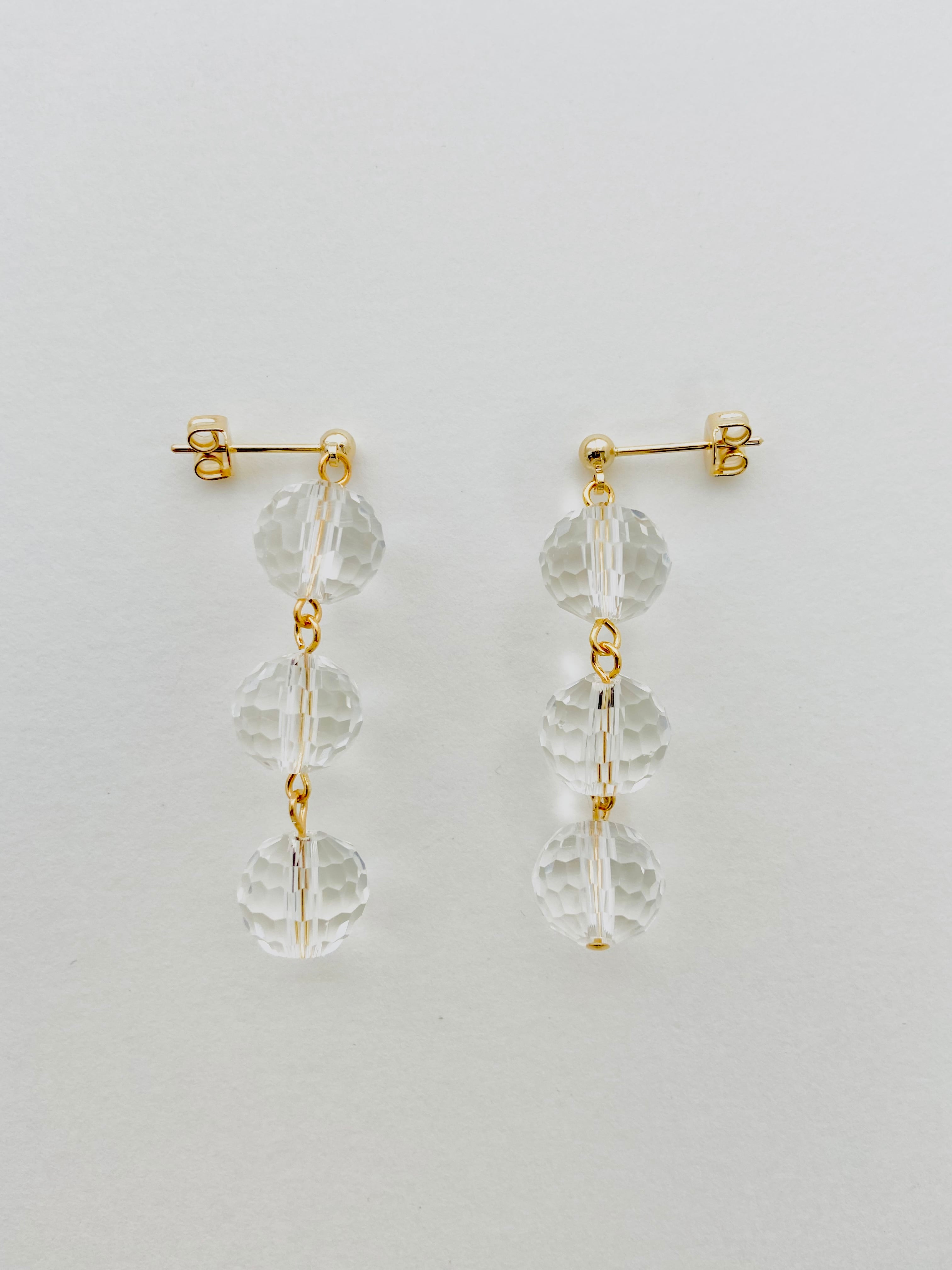 ◆素材 ピアスポスト:ステンレス ピアスキャッチ:真鍮 その他:ガラス ◆サイズ 全長:約4.5cm(ピアスポストから1番下のボールの下まで)